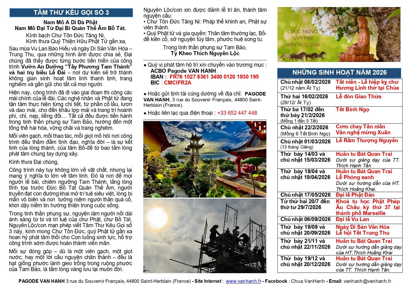 Chương trình sinh hoạt của chùa Vạn Hạnh trong năm 2026